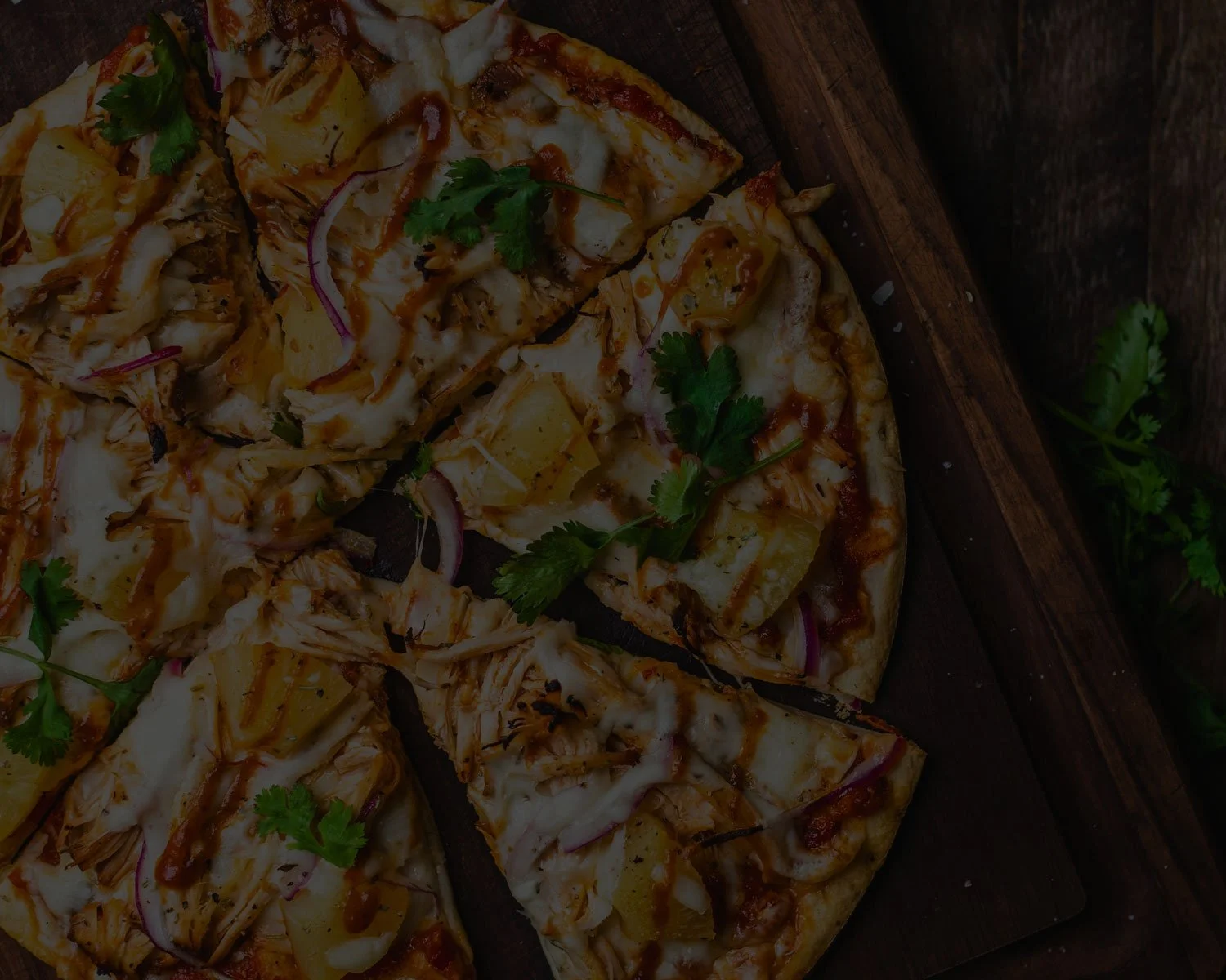 Garlic Base, Mozzarella, Parmesan, Chicken, Bacon, topped with Cold Salad